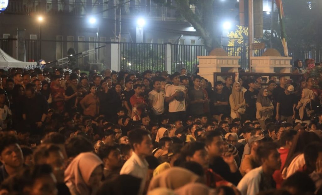 DETEKSI.co-Medan, Ribuan masyarakat Kota Medan antusias memadati halaman depan Balai Kota dan jalan Raden Saleh untuk nonton bareng (nobar) pertandingan Final Piala AFF U- 23