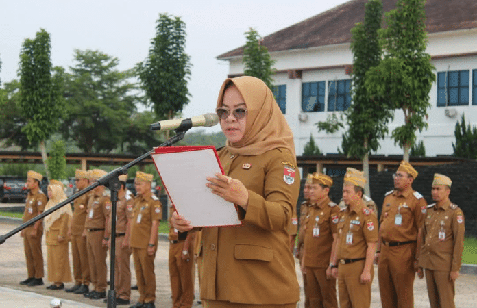 Kegiatan yang dipimpin secara langsung oleh Pembina Apel, Bupati Mesuji Hj. Elfianah, diisi dengan amanat penting terkait perilaku dan tanggung jawab pegawai.