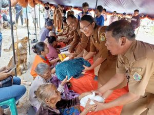 Bantuan diserahkan Kepala Dinas Sosial diwakili Kabid Perlindungan, Rehabilitasi dan Perlindungan Sosial Kristina Sam Gultom, bersama Ibu Wakil Bupati Samosir Ny. Kennauli Ariston Tua Sidauruk, didampingi aparatur Kecamatan Simanindo dan Pemerintah Desa Simarmata.