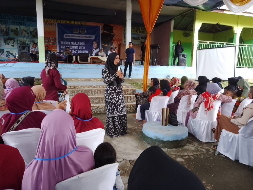 Materi Sosialisasi oleh Anggota DPR RI dari Fraksi Partai Golkar Delia Pratiwi Bru Sitepu dan Tenaga layanan operasional Deputi Bidang Promosi Dan Kerjasama Badan Gizi Nasional Republik Indonesia Rahma Dewi Auliyasari.