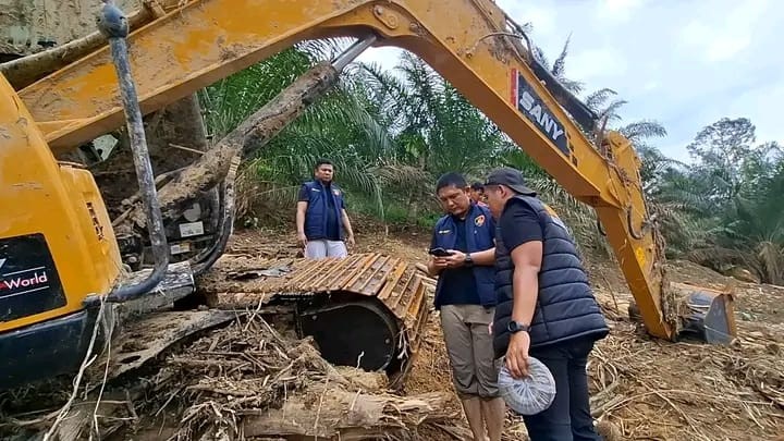 Namun, posisi ekskavator yang berada persis di tepi sungai dan dekat kawasan sawit membuat klaim tersebut perlu diperiksa lebih lanjut.
