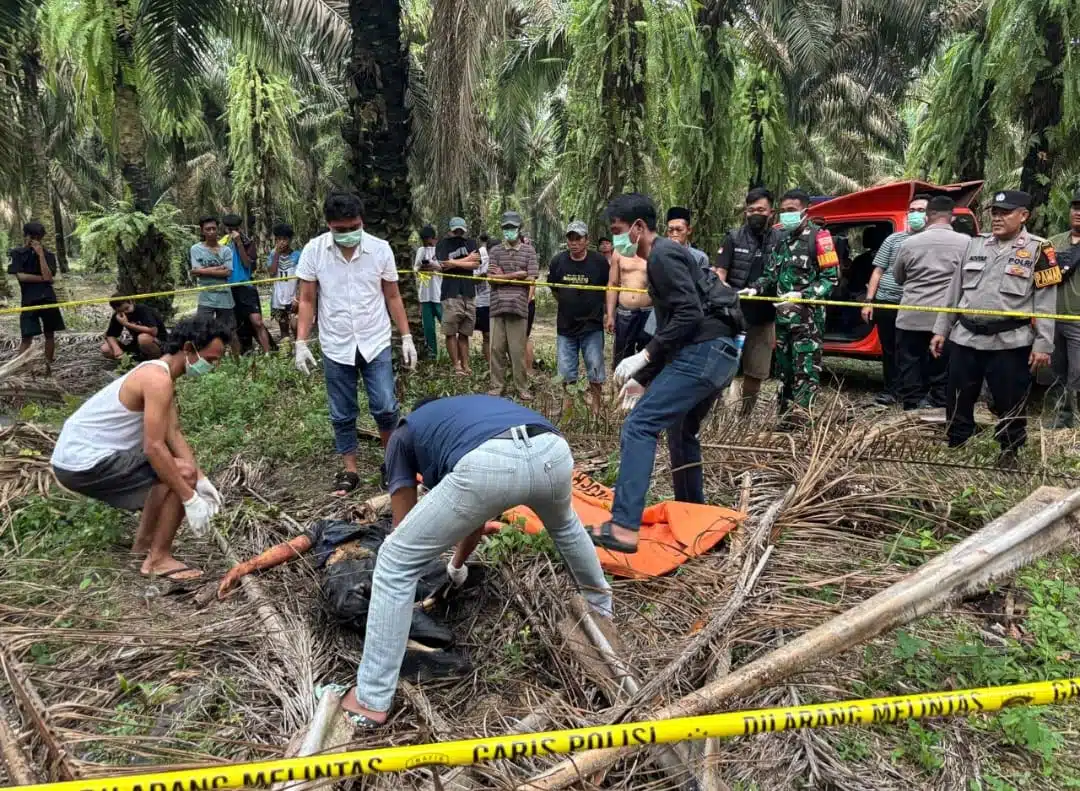 Didin (35) tahun, ketika sedang patroli di area kebun sawit. Pria tersebut mencium bau menyengat yang kemudian ditelusuri hingga menemukan sumbernya berasal dari jasad korban. Tubuh korban tergeletak dan sebagian ditutupi pelepah sawit, jelasnya.
