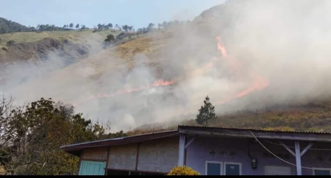 “Jarak titik api ke rumah, tinggal beberapa puluh meter. Sedang api, terus melebar dari tepi jalan bergerak menuju pebukitan”, sebutnya.