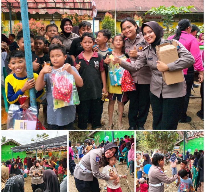 Kapolres Langkat, AKBP David Tryo Prasojo, S.H., S.I.K., M.Si., menyampaikan bahwa kegiatan ini merupakan bentuk kehadiran negara melalui Polri dalam memberikan dukungan mental bagi anak-anak terdampak bencana.