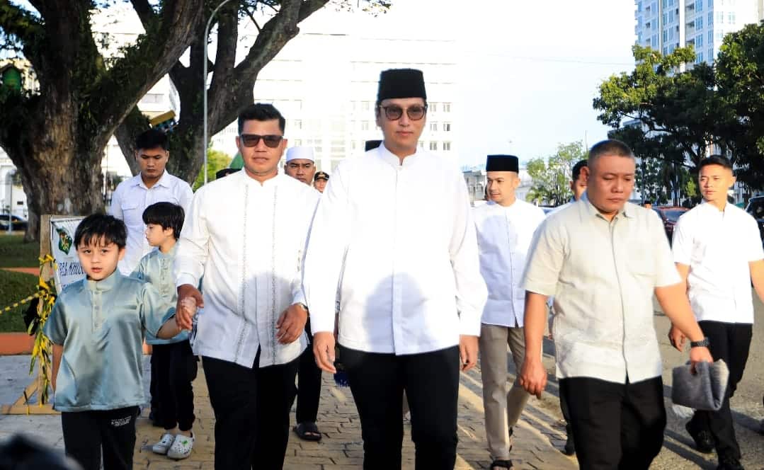 DETEKSI.co-Medan, Bersama ribuan masyarakat Wali Kota Medan Rico Tri Putra Bayu Waas melaksanakan Salat Iduladha 1446H di Lapangan Merdeka Medan, 10 Dzulhijjah, Jumat (6/6/25). Sebelum pelaksanaan salat Iduladha, gema takbir berkumandang sembari masyarakat berbondong-bondong datang memenuhi area salat.