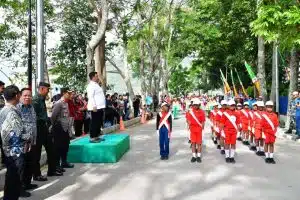 DETEKSI.co – Pangururan, Bupati Samosir Vandiko Timotius Gultom, melepas lomba gerak jalan dalam rangka memeriahkan HUT ke-80 RI Tahun 2025. Pelepasan dilakukan di depan rumah dinas bupati Samosir, Kamis (14/8/2025).