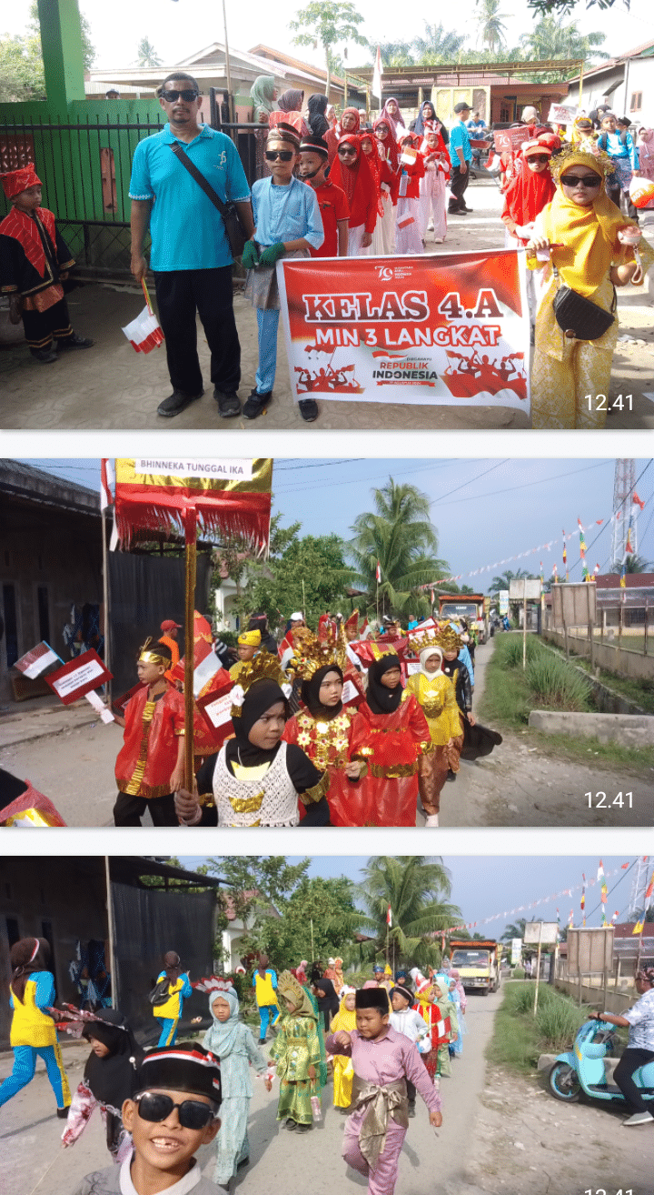 DETEKSI.co-Langkat, Dalam rangka memeriahkan HUT RI ke- 79, Madrasah ibtidaiyah negeri (MIN) 3 Langkat yang terletak di desa tanjung mulia, kecamatan hinai, Mengadakan jalan sehat dengan mengenakan pakaian daerah yang diikuti seluruh siswa /i, Guru dan kepala sekolah, Jumat (16/08/2024).