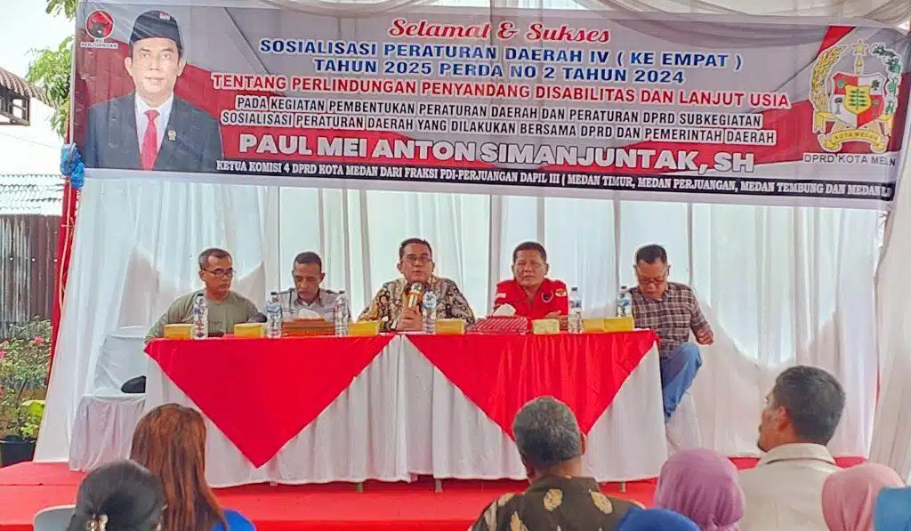 Hal itu disampaikan ketika menggelar sosialisasi Perda (Sosper) ke IV Tahun 2025 produk hukum Pemko Medan Perda No 2 Tahun 2024 tentang Perlindungan Penyandang Disabilitas dan Lanjut Usia di Jl Suasa Tengah Gg Lestari lingkungan V Kelurahan Mabar Hilir, Kecamatan Medan Deli, Sabtu (12/4/2025) siang.