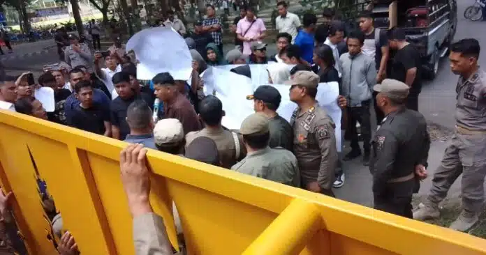 Tak lama melakukan aksi, para pemuda tersebut di sambut oleh Rudi Kinandung (Staf Ahli Bidang Pemerintahan, Hukum dan Politik) mewakili bupati Langkat didampingi Kasatpol PP Kabupaten Langkat Dameka Putra Singarimbun dan Kadis PUTR Langkat Khairul Azmi.