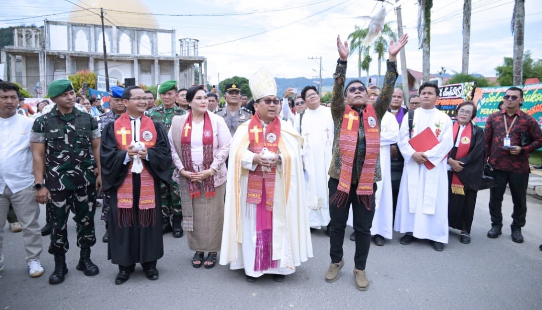 “Bantuan bukan hanya datang dari unsur pemerintah, tapi juga dari unsur gereja, juga dari seluruh elemen gereja bahu-membahu. Bukan hanya dari gereja, masjid, vihara,dan juga dari berbagai lintas keyakinan dan agama lainnya,” ucap Bupati.