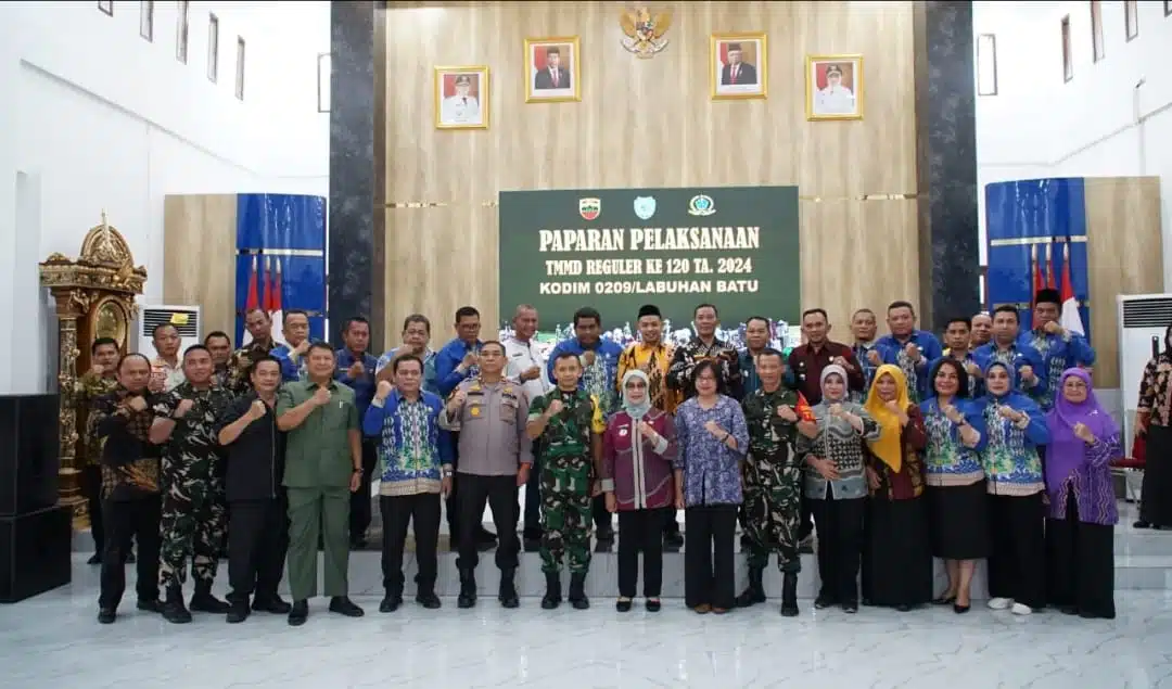 DETEKSI.co – Labuhanbatu, Pelaksana Tugas (Plt) Bupati Labuhanbatu Hj. Ellya Rosa Siregar, S.Pd., MM bersama Dandim 0208 Labuhanbatu Letkol Inf. Yudi Ardiyan Saputro menyambut kedatangan Tim Pengawas dan Evaluasi TNI Manunggal Membangun Desa Ke-120 di Pendopo Rumah Dinas Bupati Labuhanbatu, Rantau Utara, Kamis (30/05/2024).
