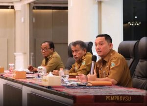 DETEKSI.co-Pangururan, Wakil Bupati Samosir Ariston Tua Sidauruk bersama Asisten Pemerintahan dan Kesra Provinsi Sumatera Utara Basarin Yunus Tanjung, memimpin rapat finalisasi persiapan Event Trail of The Kings by Ultra Trail du Mont Blanc di Aula Raja Inal Siregar Kantor Gubernur Sumatera Utara, Medan, Senin (29/9/2025).