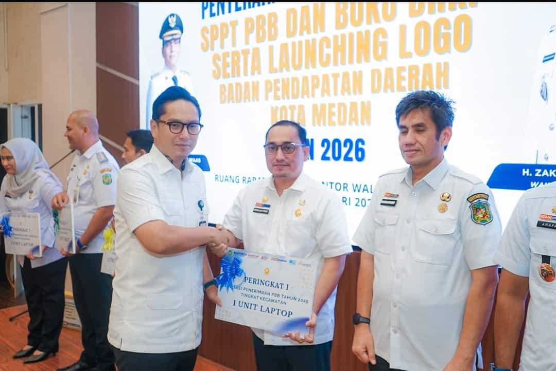 DETEKSI.co-Medan, Wali Kota Medan, Rico Tri Putra Bayu Waas menunjukkan komitmen kuat dalam mempercepat roda pembangunan di Kota Medan. Hal ini dibuktikan saat dirinya menyerahkan secara simbolis Surat Pemberitahuan Pajak Terhutang (SPPT) Pajak Bumi Bangunan (PBB) dan Buku Daftar Himpunan Ketetapan Pajak (DHKP) tahun 2026 di awal tahun, bertempat di Balai Kota Medan, Rabu (21/1/2026).