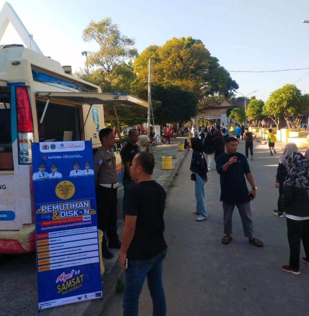 Samsat Keliling Polres Tanjungbalai Hadir di CFD, Warga Antusias Bayar Pajak Kendaraan