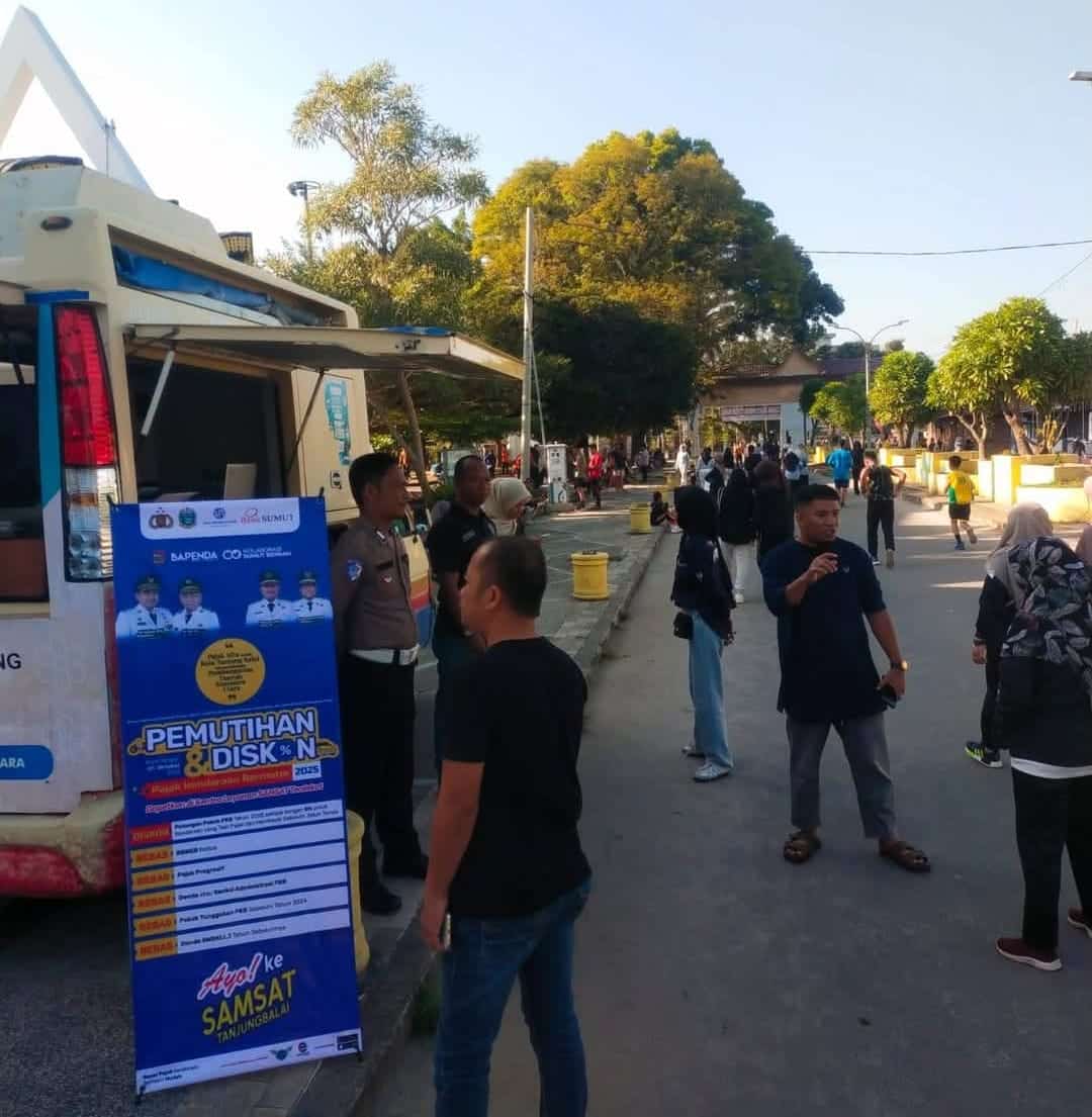 DETEKSI.co-Tanjungbalai, Suasana Car Free Day (CFD) di Lapangan Sultan Abdul Jalil Rahmadsyah Kota Tanjungbalai semakin semarak dengan hadirnya layanan Samsat Keliling Polres Tanjungbalai, Minggu (5/10).