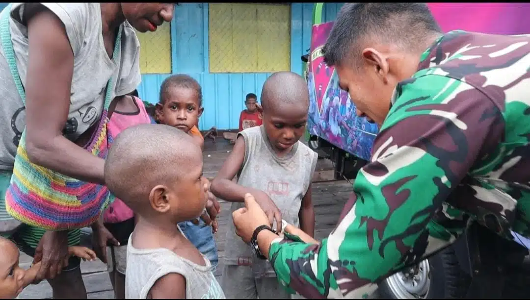 DETEKSI.co-Papua, Satgas Pamtas Kewilayahan Yonif 125/SMB melalui Pos Agats menggelar kegiatan membagikan bubur kacang hijau untuk masyarakat Desa Bis Agats, Distrik Agats, Kab. Asmat, Papua Selatan, Rabu (12/7/2023).