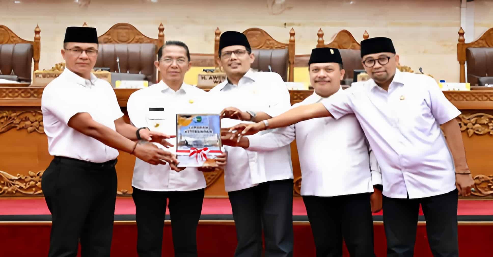 Rapat paripurna ditutup dengan penyerahan draf LKPJ Tahun Anggaran 2025 secara simbolis dari Wali Kota Batam kepada pimpinan DPRD Kota Batam.