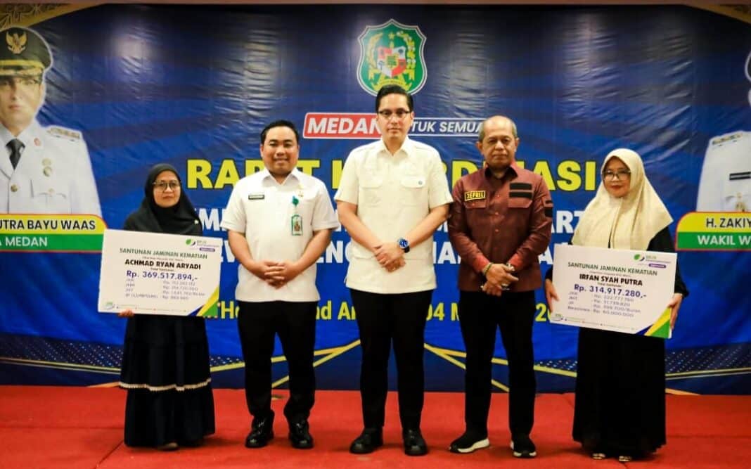 Kegiatan tersebut dihadiri unsur Forkopimda Kota Medan, Kepala Cabang BPJS Ketenagakerjaan Kota Medan Jefri Iswanto, pimpinan perangkat daerah di lingkungan Pemko Medan seperti Kepala Bappeda Ferry Ichsan, Plt Kadis Ketenagakerjaan Ramaddan, serta para ketua serikat pekerja dan perwakilan pengusaha.