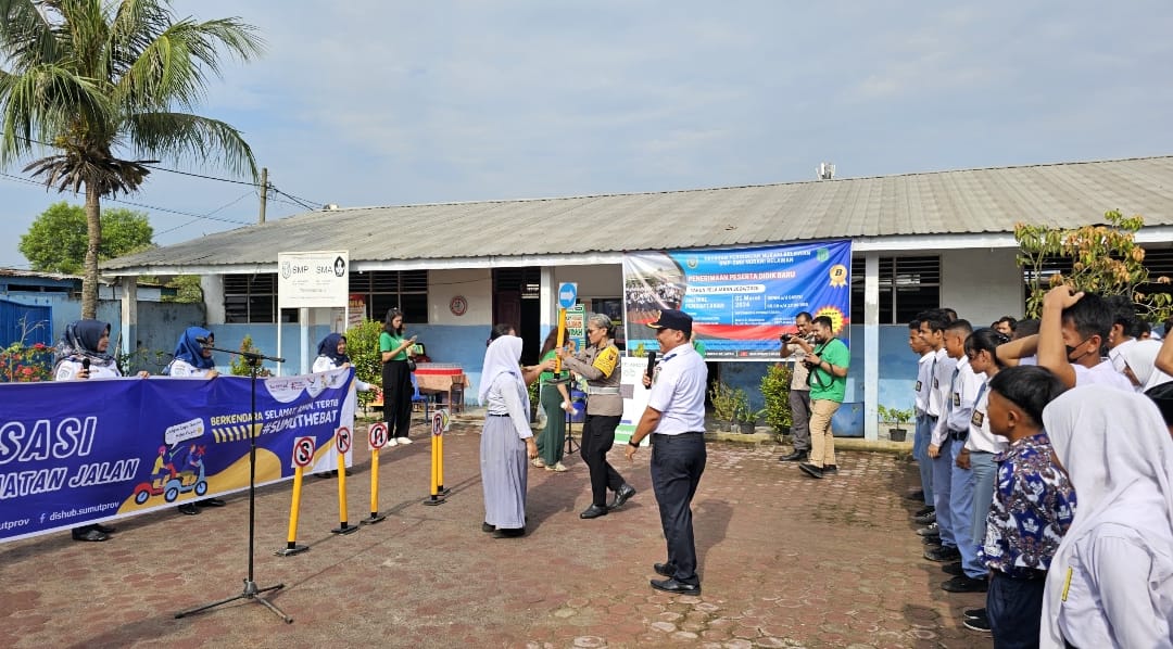 DETEKSI.co-Medan, Dinas Perhubungan (Dishub) Sumut menjalankan program sosialisasi keselamatan berlalu lintas dengan aktif mengunjungi ratusan pelajar setingkat SMP dan SMP di SMA Swasta Nurani Belawan, Medan, pada Rabu (21/2/2024).