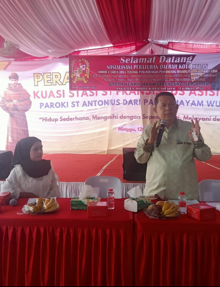 DETEKSI.co-Medan, Anggota DPRD Medan, Fraksi PSI Dapil Medan 5, Henry Jhon Hutagalung menggelar Sosialisasi Perda Nomor 2 tahun 2024 tentang perlindungan penyandang disabilitas dan lanjut