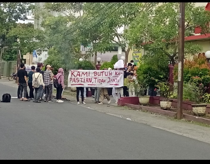 DETEKSI.co-Medan, Mahasiswa Universitas Darma Agung (UDA) Medan kembali melakukan aksi di depan Gedung Biro Rektor kampus tersebut yang terletak di Jalan DR TD Pardede Medan,