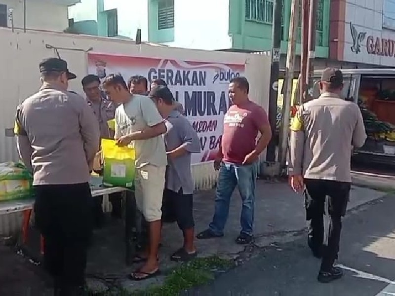 Polres Pelabuhan Belawan Gelar Gerakan Pangan Murah Polri, Jual 1 Ton Beras SPHP di Belawan II