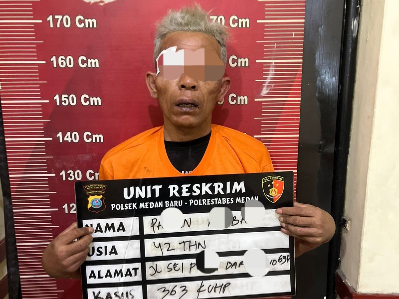 Pelaku saat diamankan di Polsek Medan Baru. (DETEKSI.co/Ist) DETEKSI.co – Medan, Personil unit reskrkm Polsek Medan Baru gerak cepat mengamankan seorang pelaku pencurian sepeda motor