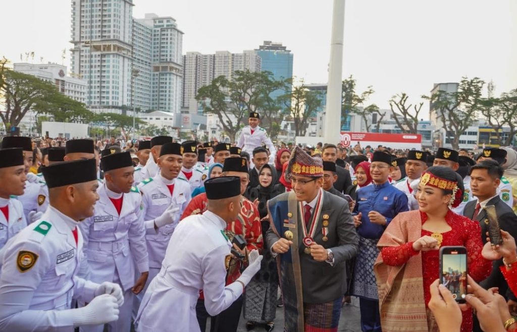 Upacara Penurunan Bendera Merah Putih pada Peringatan HUT ke-80 Kemri berlangsung Khidmat di Lapangan Merdeka