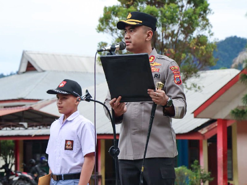 Kapolres Tapanuli Tengah AKBP Wahyu Endrajaya, S.I.K., M.Si., memimpin Upacara Bendera di Sekolah Menengah Kejuruan Negeri (SMKN) 3 Sibolga, Senin (20/10/2025). DETEKSI.co – Tapteng, Kapolres