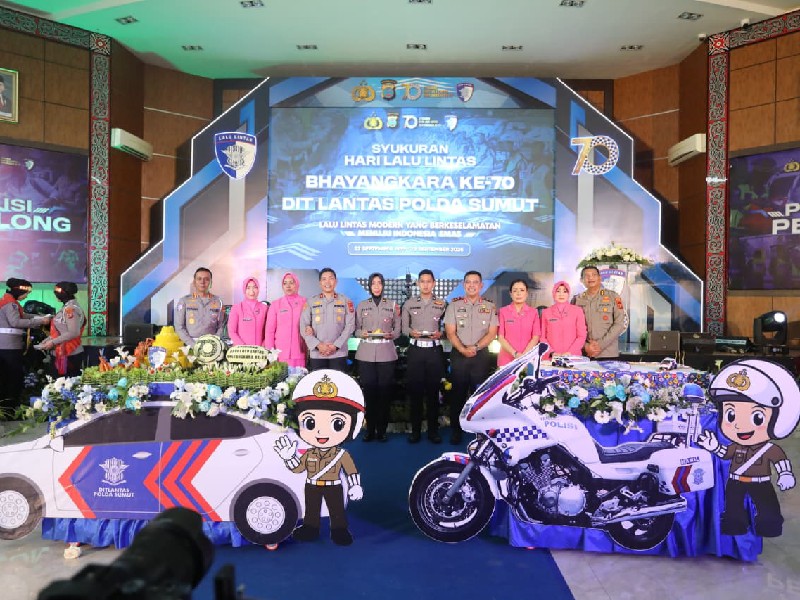 DETEKSI.co – Medan, Polda Sumatera Utara menggelar puncak peringatan Hari Ulang Tahun Lalu Lintas Bhayangkara ke-70 di Aula Tribrata Polda Sumut, Senin (22/9/2025). Acara berlangsung khidmat