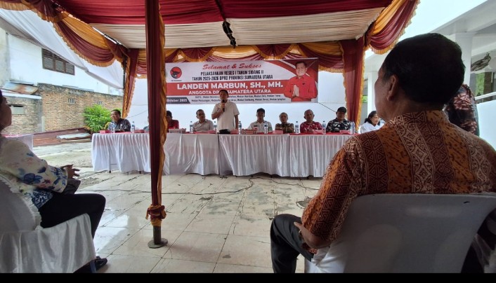 DETEKSI.co-Medan, Anggota DPRD Provinsi Sumatera Utara (Sumut) Landen Marbun, SH, MH melakukan reses di halaman gereja GKPI Jemaat Khusus P. Brayan, Jalan Asrama Lk IV