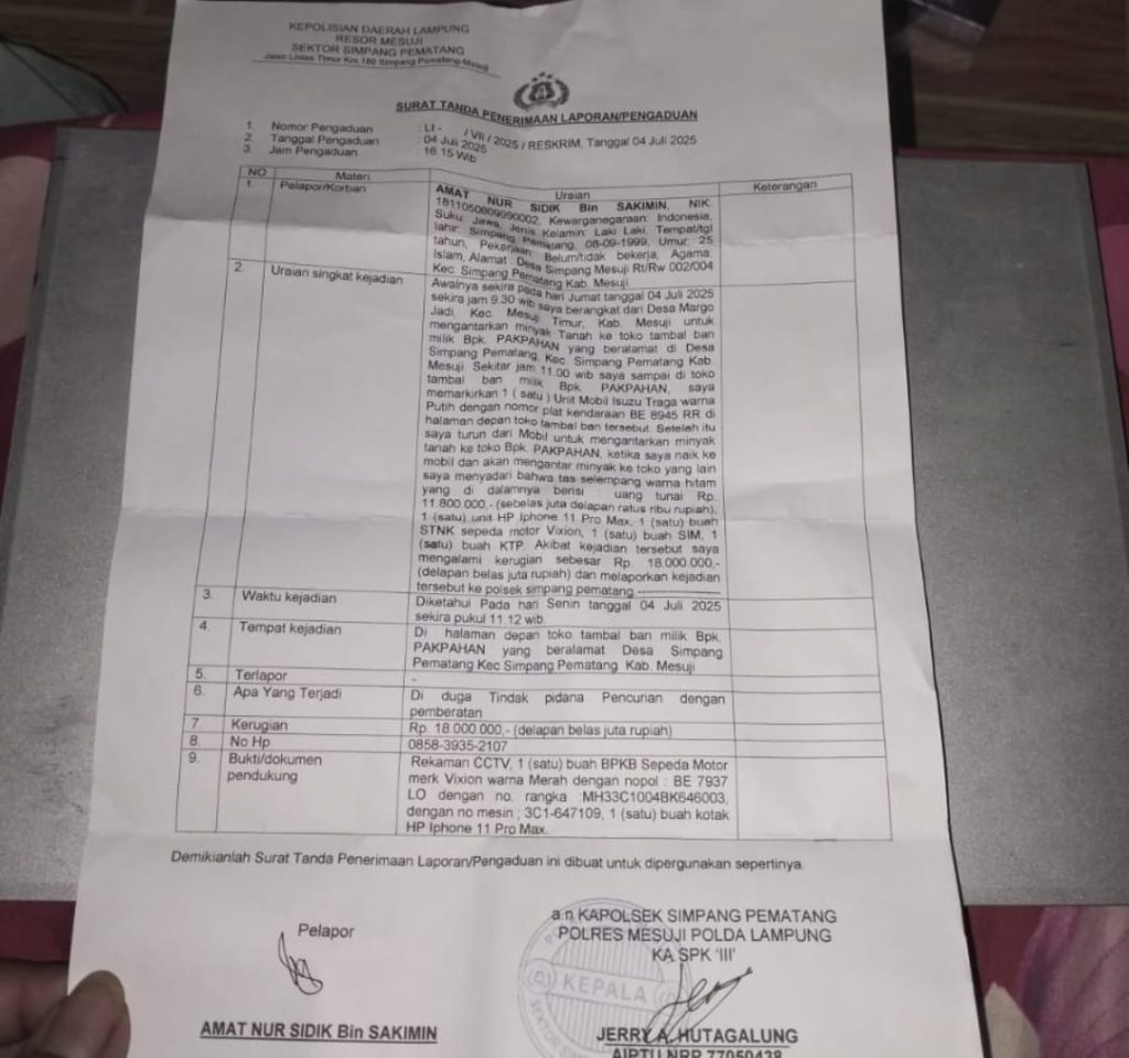 DETEKSI.co-LAMPUNG, Desa Simpang Pematang, Kecamatan Simpang Pematang, Kabupaten Mesuji, kembali digegerkan aksi pencurian. Kali ini kawanan pencuri berhasil menggondol mobil L300 hitam bernomor polisi BE