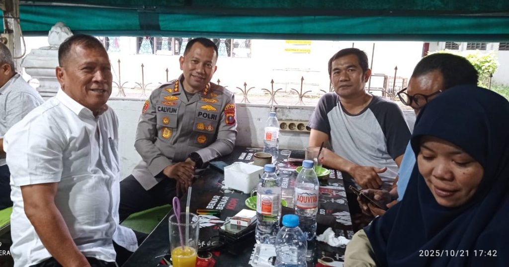 Kapolrestabes Medan, Kombes Pol Jean Calvijn santai dan akrab bersama di Warkop Jurnalis Jalan H Agus Salim Medan, Selasa (21/10/2025).